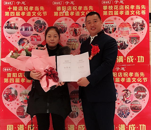 12月份月,她前去成都參加孝當(dāng)先第四屆孝道文化節(jié),對孝當(dāng)先公司的產(chǎn)品、企業(yè)文化、團(tuán)隊(duì)合作模式非常認(rèn)可,迅速確定簽約! 祝唐總孝當(dāng)先羊奶專賣店早日開業(yè),生意紅紅火火!