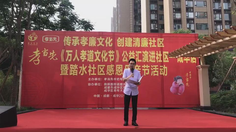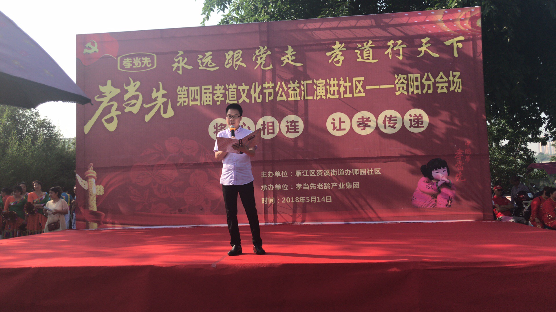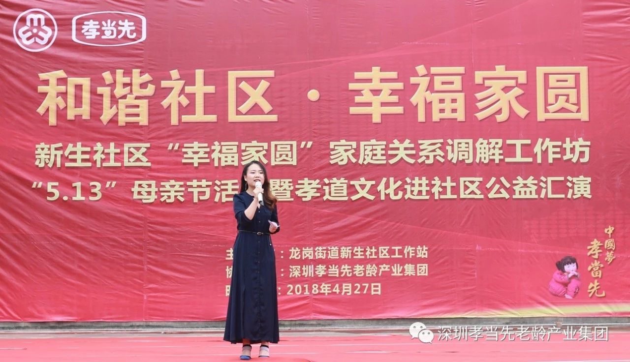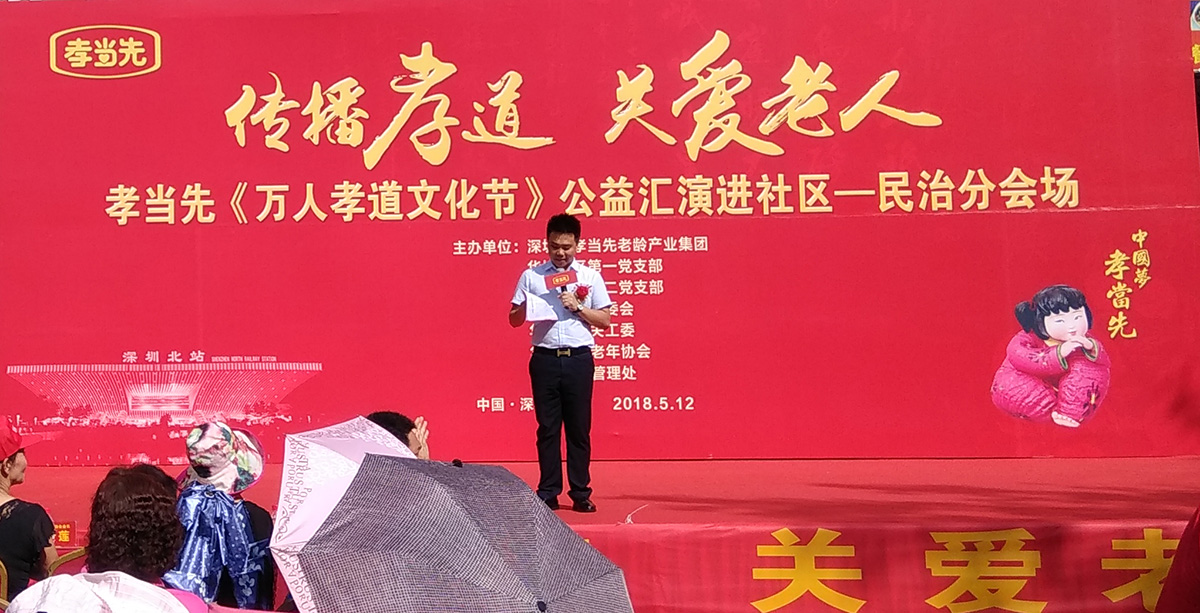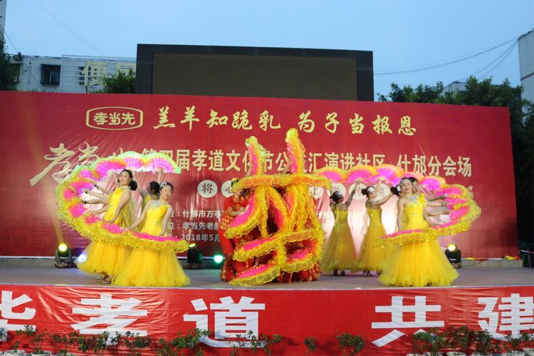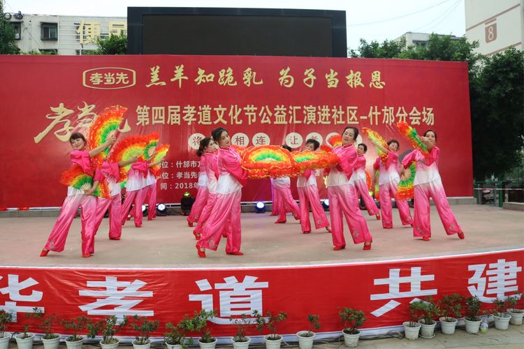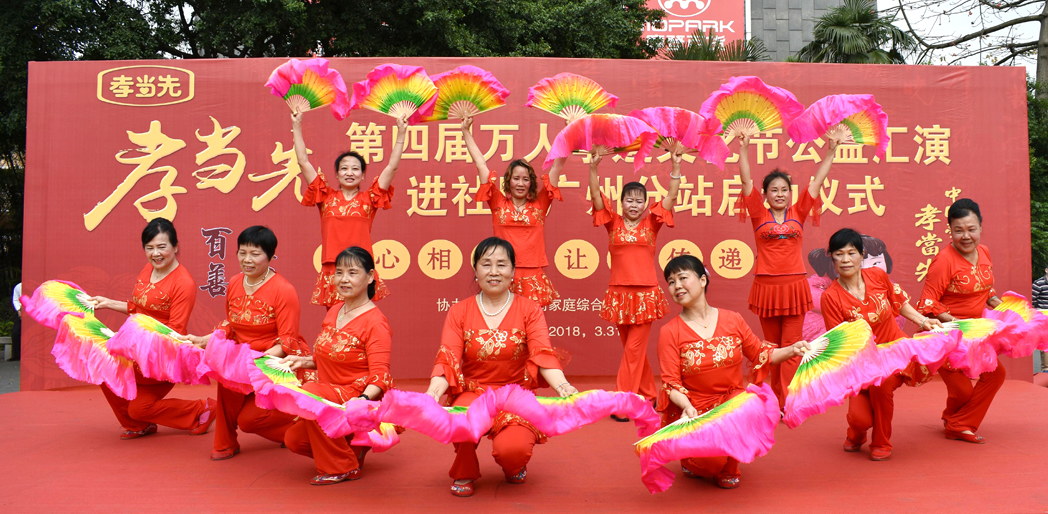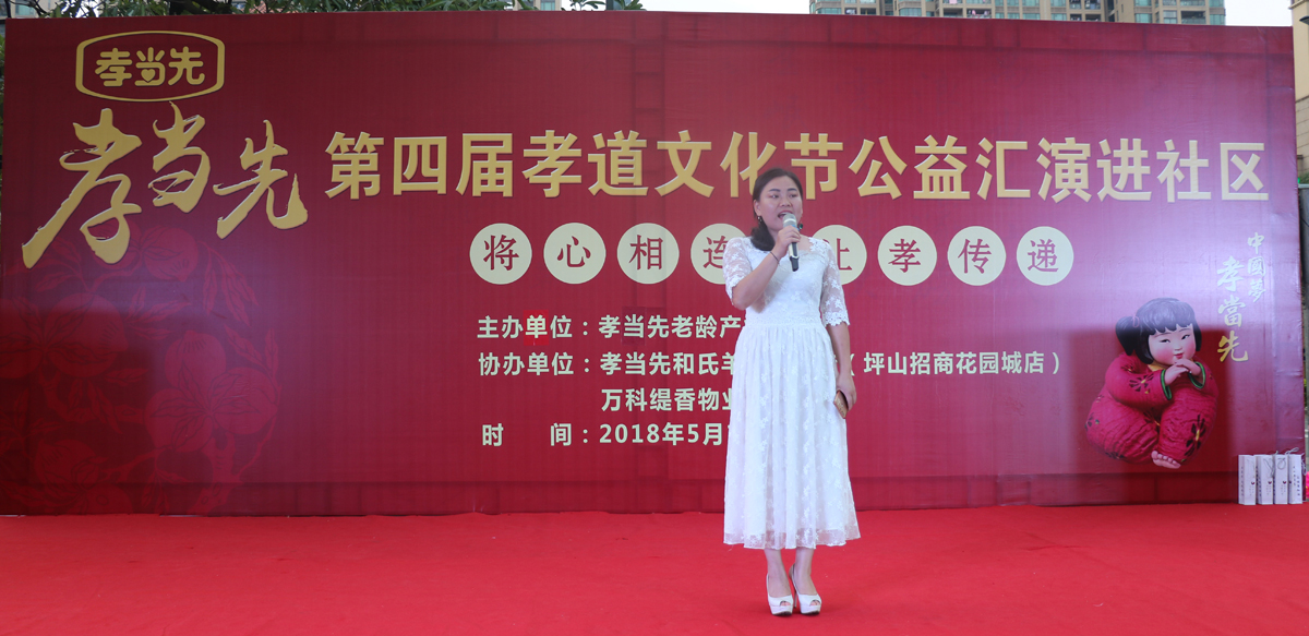 五月,歡慶著勞動者的汗水,紀念著青春沸騰的歷史,回味著溫馨淳淳的母愛,孝當先第四屆《萬人孝道文化節(jié)》公益匯演進社區(qū)活動在粵、蜀、贛、湘等地隆重拉開帷幕,截至2018年5月18日,已成功舉辦了十三場,演出節(jié)目200多個,參加團隊1000多個,各地主流媒體針對活動盛況及孝道文化傳播感人場面爭相報道,直接或間接受益人群達千萬以上。孝道文化節(jié)伴隨著優(yōu)美的舞蹈,悅耳的歌聲在每一個活動社區(qū)激情演唱,中華民族優(yōu)秀的孝道文化,在孝當先人的帶領下又一次在中華大地上傳播回響。