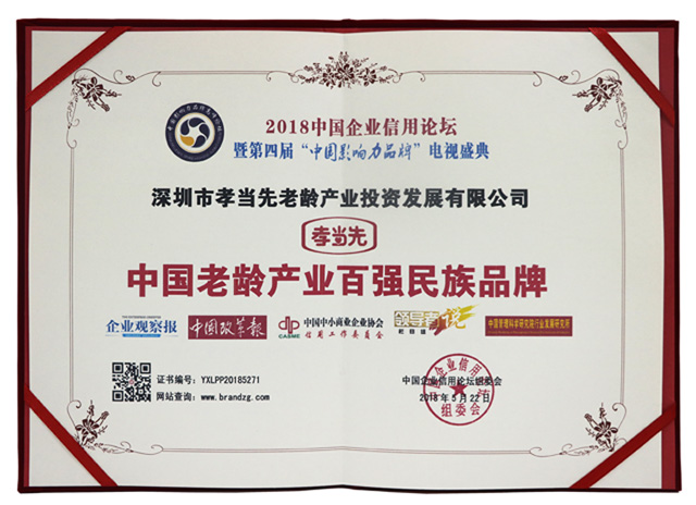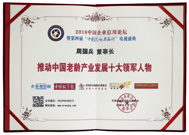 喜訊:孝當先集團于2018年5月22日,在北京全國政協(xié)禮堂榮獲“中國老齡產業(yè)百強民族品牌”,“中國老齡產業(yè)誠信經營十佳示范單位”,董事長周國兵榮獲“推動中國老齡產業(yè)發(fā)展十大領軍人物”的殊榮。