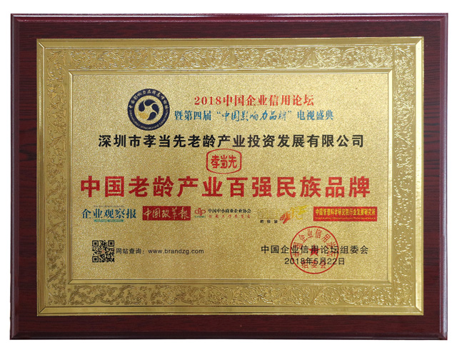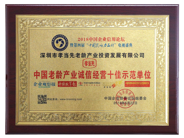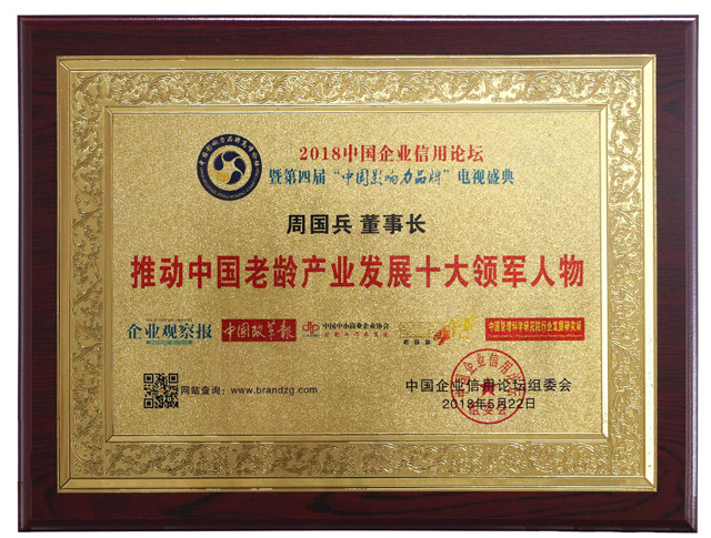孝當先集團一直秉承“以商養(yǎng)善、孝行天下”的企業(yè)使命,誠信經營,為老齡產業(yè)的健康發(fā)展和弘揚孝道文化做出了突出貢獻,榮獲“中國老齡產業(yè)百強民族品牌”,“中國老齡產業(yè)誠信經營十佳示范單位”,董事長周國兵榮獲“推動中國老齡產業(yè)發(fā)展十大領軍人物”的殊榮。