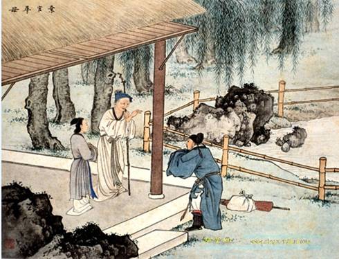 朱壽昌,宋代天長人,七歲時(shí),生母劉氏被嫡母(父親的正妻)嫉妒,不得不改嫁他人,五十年母子音信不通。神宗時(shí),朱壽昌在朝做官,曾經(jīng)刺血書寫《金剛經(jīng)》,行四方尋找生母,得到線索后,決心棄官到陜西尋找生母,發(fā)誓不見母親永不返回。終于在陜州遇到生母和兩個(gè)弟弟,母子歡聚,一起返回,這時(shí)母親已經(jīng)七十多歲了。