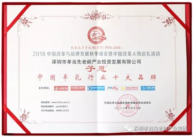 喜訊:“2018中國改革與品牌發(fā)展秋季峰會暨中國改革人物巡禮活動”在深圳成功舉辦。鑒于孝當(dāng)先集團在弘揚中華孝道文化和品牌創(chuàng)新等方面取得的成就,集團榮獲“中華孝道文化傳播模范單位”、旗下品牌“子恩”榮獲“中國羊乳行業(yè)十大品牌”、董事長周國兵榮獲“中國改革十大杰出企業(yè)家”三項殊榮!