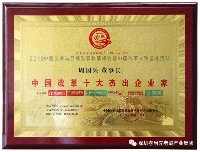 孝當(dāng)先老齡產(chǎn)業(yè)集團位于改革開放最前沿的深圳,作為老齡產(chǎn)業(yè)領(lǐng)域的創(chuàng)新實踐者,鑒于孝當(dāng)先集團在弘揚中華孝道文化和品牌創(chuàng)新等方面取得的成就,榮幸受邀參會,并榮獲“中華孝道文化傳播模范單位”、旗下品牌“子恩”榮獲“中國羊乳行業(yè)十大品牌”、董事長周國兵榮獲“中國改革十大杰出企業(yè)家”三項重量級獎項,再次印證了孝當(dāng)先集團幾年來的發(fā)展成就以及逐漸增強的影響力。