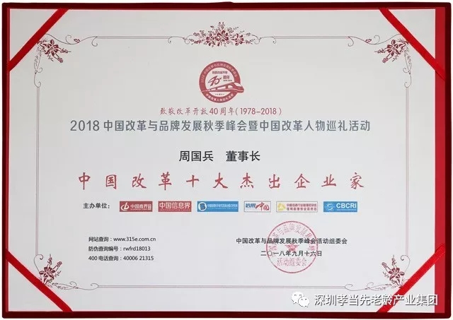 2018年9月16日,以“致敬改革開放40周年(1978-2018)”為主題的“2018中國改革與品牌發(fā)展秋季峰會(深圳)暨中國改革人物巡禮活動”在深圳盛大召開。峰會以“新時達、新起點、新突破”為主議題,旨在向改革領(lǐng)軍人物致敬,向企業(yè)改革領(lǐng)軍者致敬,向改革創(chuàng)業(yè)領(lǐng)跑者致敬,向祖國改革開放40年來的豐功偉績獻禮。