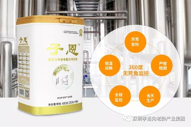 “子恩”品牌羊乳粉是由孝當(dāng)先老齡產(chǎn)業(yè)集團(tuán)攜手陜西和氏乳業(yè)集團(tuán)聯(lián)袂打造的羊乳制品高端品牌?!白佣鳌毖蛉榉蹏?yán)格篩選優(yōu)質(zhì)奶源,奶源來(lái)源于57萬(wàn)畝生態(tài)牧場(chǎng)、海拔2125米優(yōu)質(zhì)高寒川牧場(chǎng)及6個(gè)標(biāo)準(zhǔn)化示范養(yǎng)殖基地,從源頭上保障“子恩”羊乳粉的安全可控。每一罐“子恩“羊乳粉皆秉承“營(yíng)養(yǎng)全面、配比均衡”科學(xué)理念,實(shí)現(xiàn)了從鮮奶檢測(cè)、標(biāo)準(zhǔn)化配料、濃縮、噴霧、熱敏營(yíng)養(yǎng)素干混、包裝等全過(guò)程智能化生產(chǎn)。在質(zhì)量檢測(cè)上,360度立體監(jiān)測(cè),嚴(yán)苛檢測(cè)為品質(zhì)護(hù)航。
