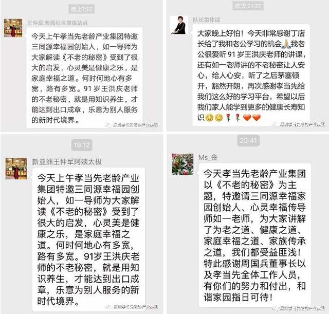 講座結(jié)束后,大家意猶未盡,紛紛發(fā)表感言,表達(dá)了自己的激動(dòng)之情和心得感悟。下面摘錄部分叔叔阿姨的感言與大家共享!
