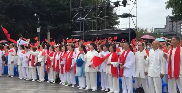 德陽市旌陽街道文廟社區(qū)黨支部書記米燕、德陽市民政局黨建促進會副主席李曉光、旌陽區(qū)民政局福利救濟股股長周光磊、德陽市精神文明辦主任冷紅、副科長朱國文、德陽市城市管理行政執(zhí)法支隊直屬一大隊隊長黃利云、旌陽區(qū)老人寶養(yǎng)老服務中心文惠君、德陽市陽光太極拳俱樂部理事長范傳榮、孝當先集團四川分公司總經理莊金科、運營總監(jiān)李興萍,以及社區(qū)18支團隊1000多人參加了活動。