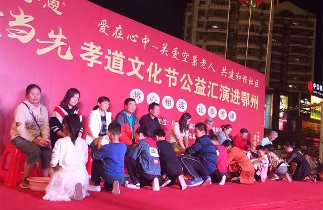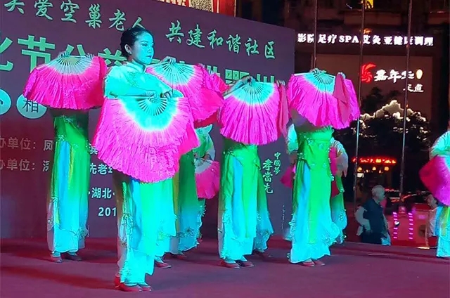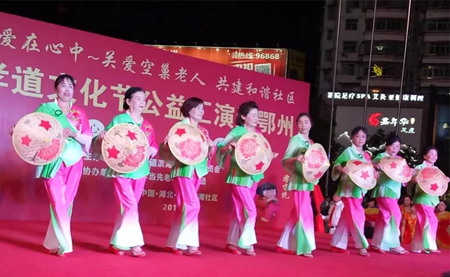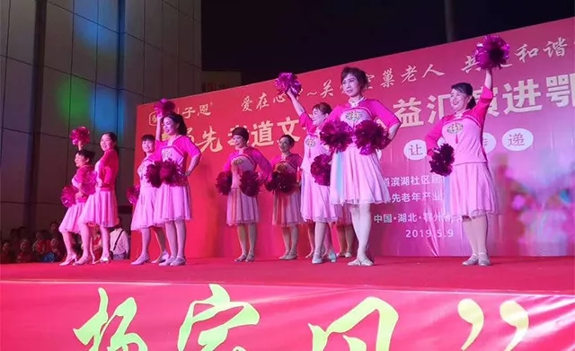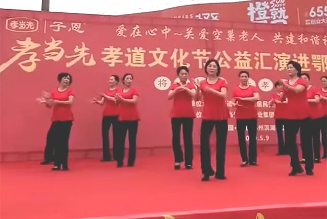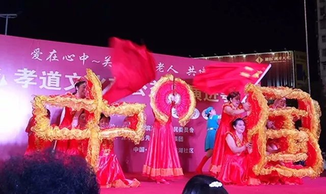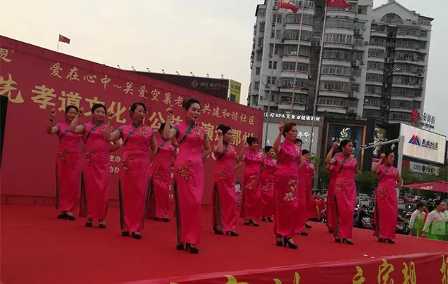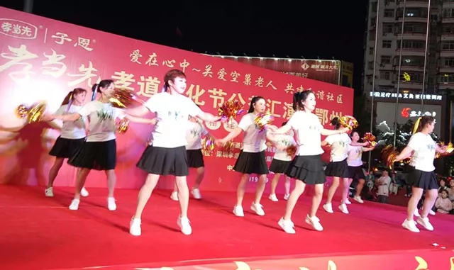 現(xiàn)場(chǎng)圍繞著“關(guān)愛空巢老人,共建和諧社區(qū)”這一活動(dòng)主題展開, 節(jié)目豐富多彩、亮點(diǎn)紛呈,內(nèi)容涵蓋歌曲、舞蹈、旗袍秀等多種藝術(shù)形式。一段優(yōu)美的開場(chǎng)舞《情系人民》拉開了序幕,接下來,扇子舞《山里的人樂得好瀟灑》活波歡快,旗袍秀《塞北的雪》動(dòng)作優(yōu)美、韻味十足,歌曲《最美的歌獻(xiàn)給媽媽》深情動(dòng)人,爵士舞《SOLO》動(dòng)感十足,精彩節(jié)目還有花球舞《好運(yùn)送給你》、健身舞《?;丶铱纯础?,扇子舞《在希望的田野上》,鬼步舞《妹妹不哭》,彩球舞《大時(shí)代》,斗笠舞《萬(wàn)泉河水》,扇子舞《我們的中國(guó)夢(mèng)》等。特別是孝道感恩環(huán)節(jié),十組孝心家庭的兒女為父母洗腳,互相擁抱場(chǎng)面感人,讓人動(dòng)容。