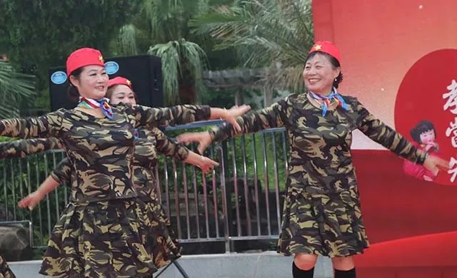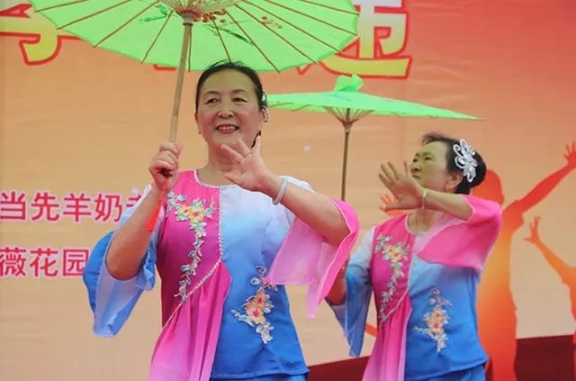 演出接近尾聲時,天公不作美,下起了大雨,絲毫不受影響的阿姨們繼續(xù)保持最完美的狀態(tài)為大家表演,雨中的舞臺也別是一番風(fēng)情。讓我們?yōu)樗齻凕c贊。