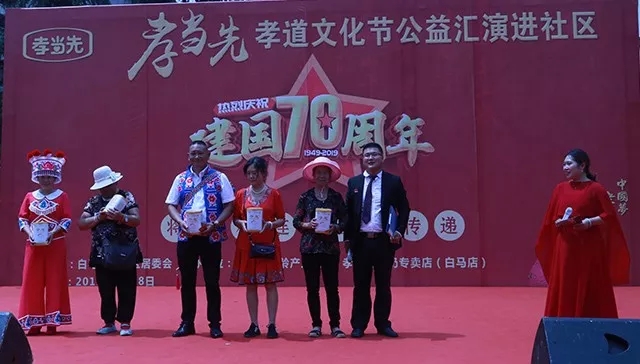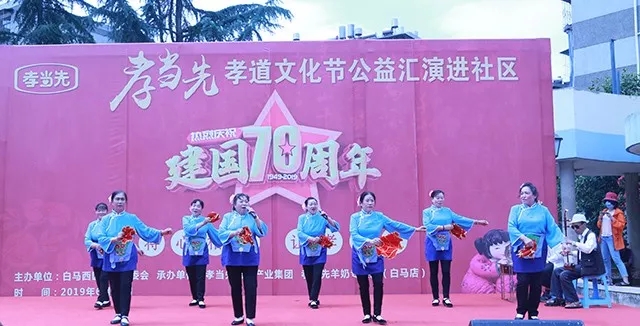 近日,昆明白馬西區(qū)社區(qū)熱鬧非凡,由白馬西區(qū)社區(qū)居委會主辦,孝當(dāng)先老齡產(chǎn)業(yè)集團、孝當(dāng)先羊奶專賣店白馬店協(xié)辦的孝當(dāng)先孝道文化節(jié)公益匯演進社區(qū)昆明白馬分會場隆重舉辦。來自社區(qū)的20余支文藝表演團隊歡聚一堂,載歌載舞慶?!敖▏?0周年”。