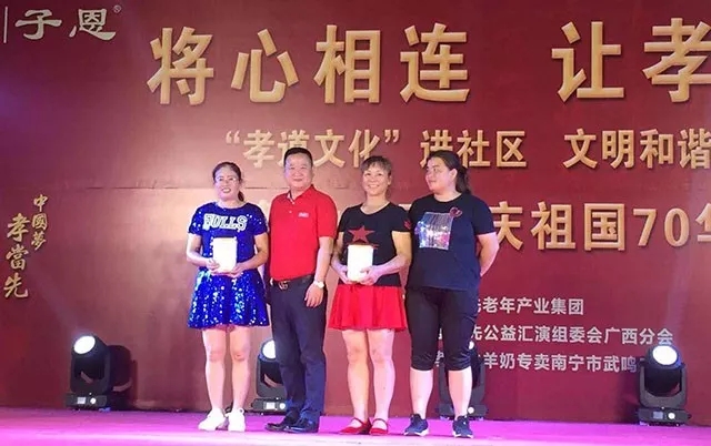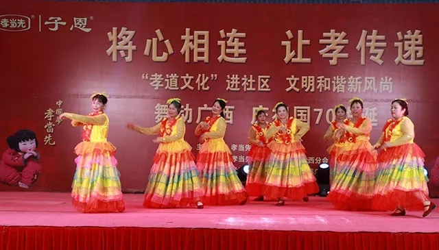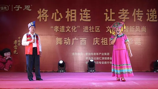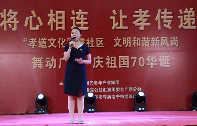 將心相連,讓孝傳遞!8月25日,孝當先老齡產(chǎn)業(yè)集團、孝當先公益匯演組委會廣西分會、孝當先羊奶專賣店南寧市武鳴店主辦的“舞動廣西 慶祖國70華誕”大型公益匯演在武鳴老年人活動中心廣場舉行。