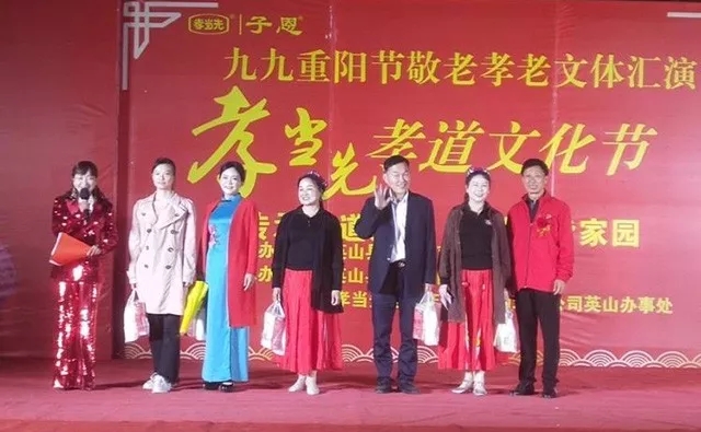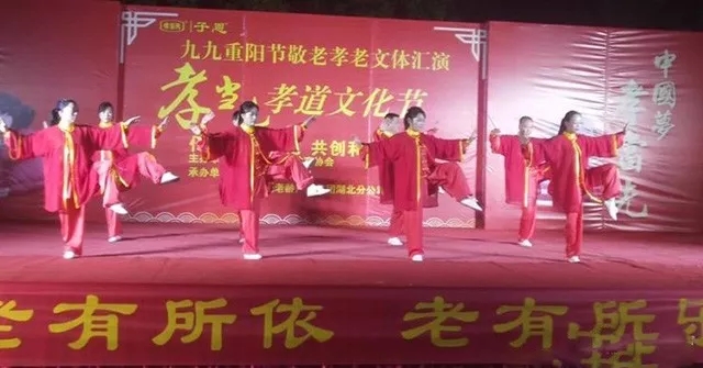 九九重陽節(jié),濃濃敬老情。為了讓尊老、孝老的良好氛圍在全社會更好地得到宣揚,由英山縣老年人體育協(xié)會主辦,英山縣太極三隊、孝當(dāng)先連鎖專賣店湖北英山店承辦的“九九重陽節(jié)敬老孝老文體匯演暨孝當(dāng)先孝道文化節(jié)”于2019年10月7日重陽節(jié)當(dāng)天傍晚在英山縣畢昇廣場隆重舉行。湖北英山縣電視臺進行了報道。