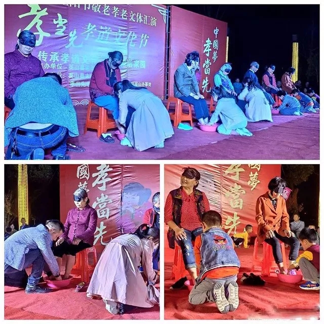 ▲孝道感恩環(huán)節(jié):為長輩洗腳,弘揚孝老敬老傳統(tǒng)美德