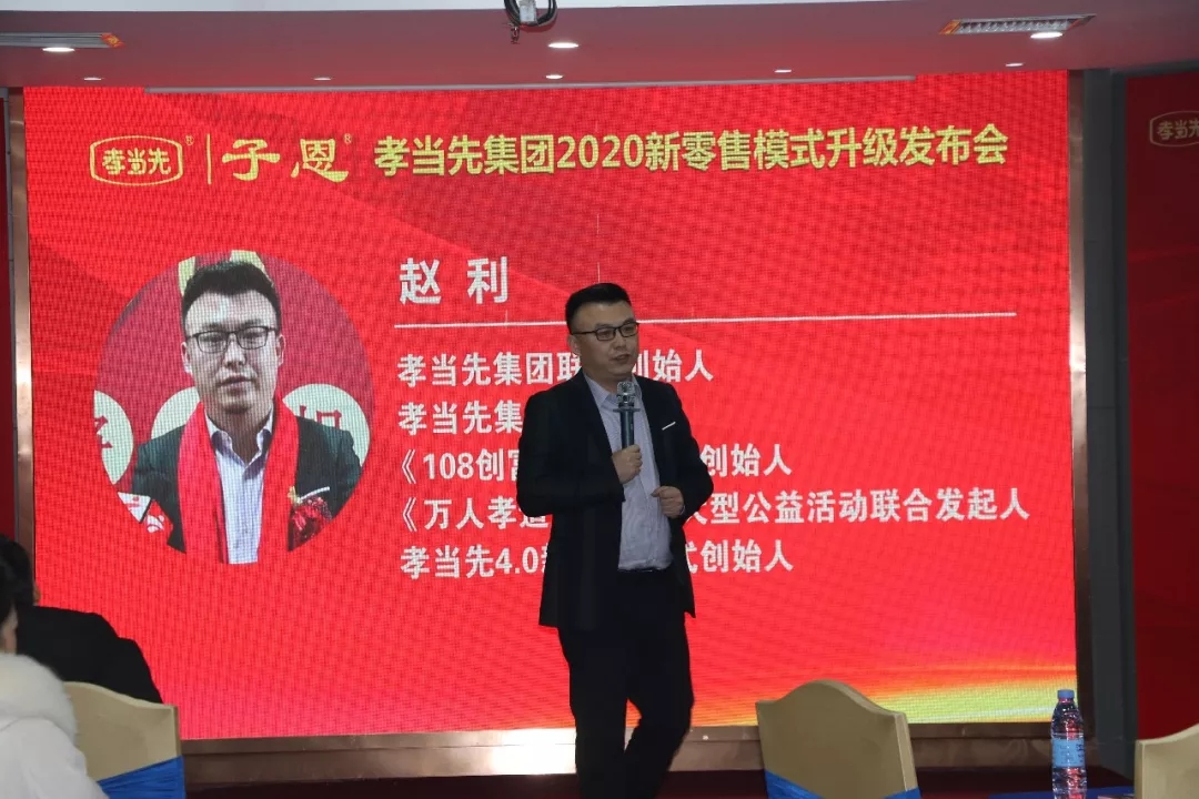 ▲孝當先總裁趙利解讀《孝當先4.0新零售模式》,并分享4.0新零售落地操作及社長開發(fā)方案