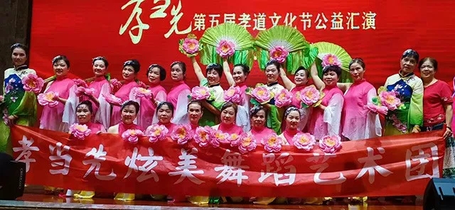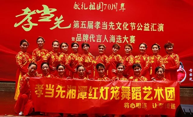 1200余名孝當先會員歡聚一堂,載歌載舞,共同弘揚中華孝道文化優(yōu)良傳統(tǒng)美德,獻禮建國70周年。節(jié)目有歌舞、花鼓戲、太極拳表演等,內容豐富多彩,氣氛熱烈。